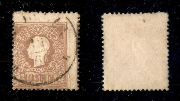 1858 - 10 soldi (26) - dentellatura molto spostata con parte del vicino a destra - usato con annullamento molto leggero