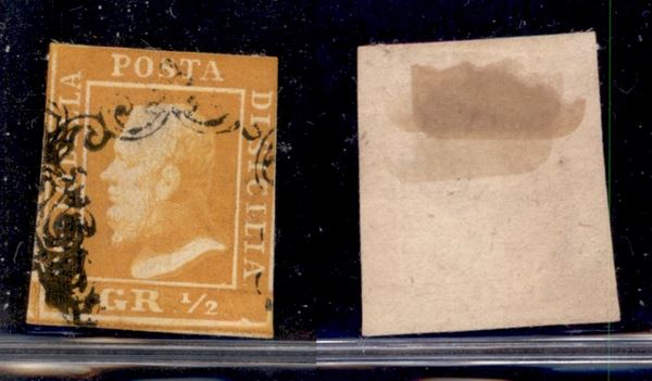 1859 - Mezzo grano (2a - arancio) usato - corto da due lati (7.000)
