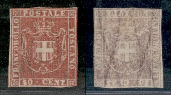 1860 - 40 cent (21) nuovo senza gomma - appena corto da tre lati - cert. AG (9.500)