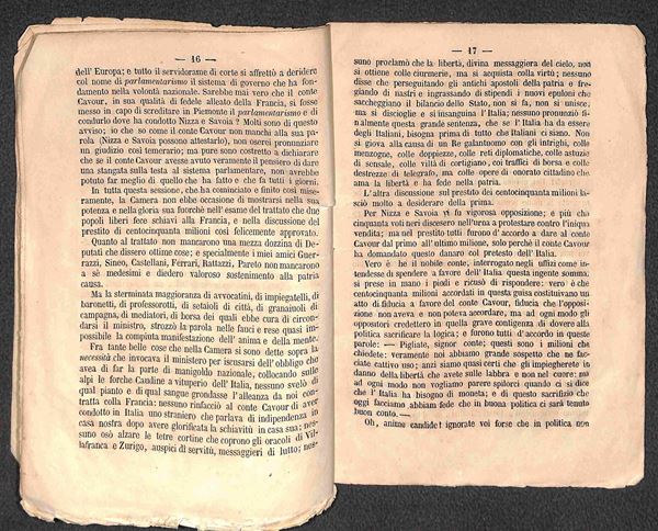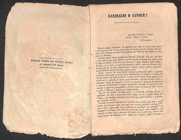 1860 - Garibaldi o Cavour - Memorie Politiche di Angelo Brofferio - opuscolo di 32 pagine (13x20)