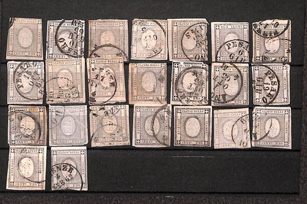1861 - 1 cent (19) - Cartoncino con 22 pezzi di colori diversi - da esaminare