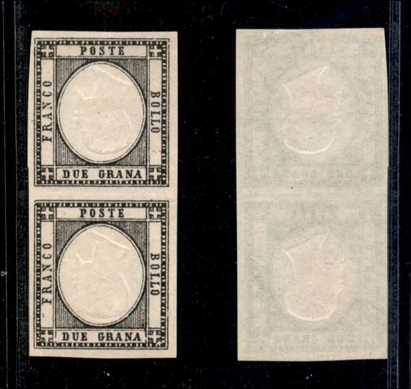 1861 - Prove - 2 grana (nero) - coppia con effigi capovolte (postume) - senza gomma
