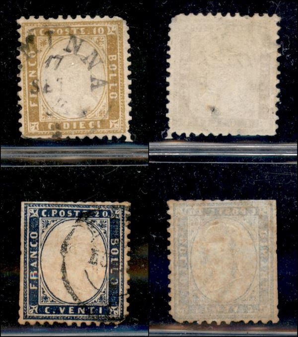 1862 - 10 cent (1) usato a Ciminna (P.ti R1) + 20 cent (2) usato - difetti