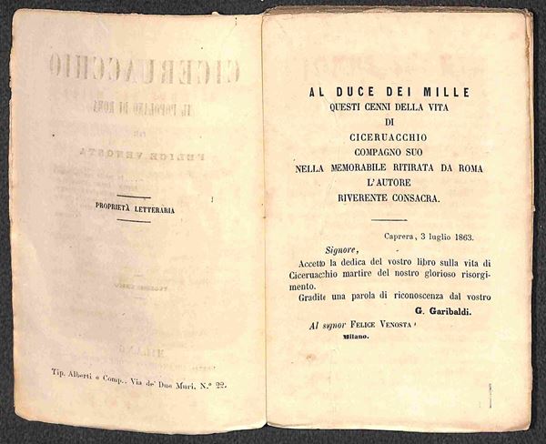 1863 - Ciceruacchio/Il popolano di Roma (per Felice Venosta) - libro di 160 pagine copertinato (10x16)