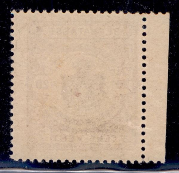 1870 - Saggi - 20 cent Segnatasse (Unificato 68) - bordo di foglio - gomma integra