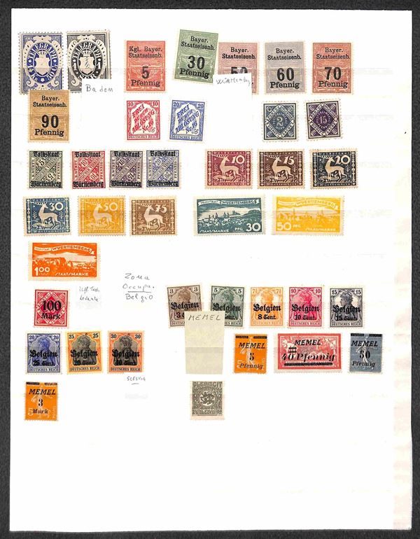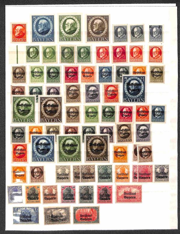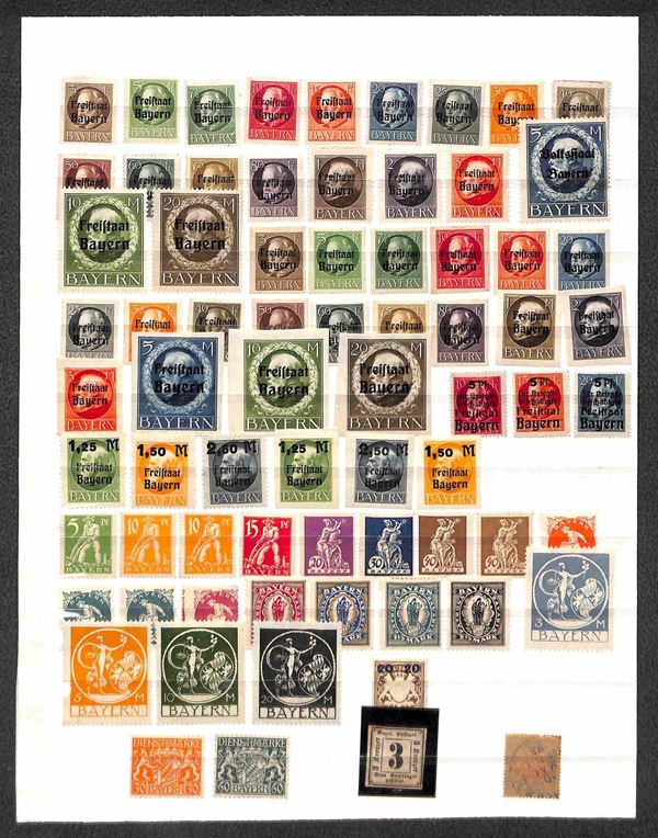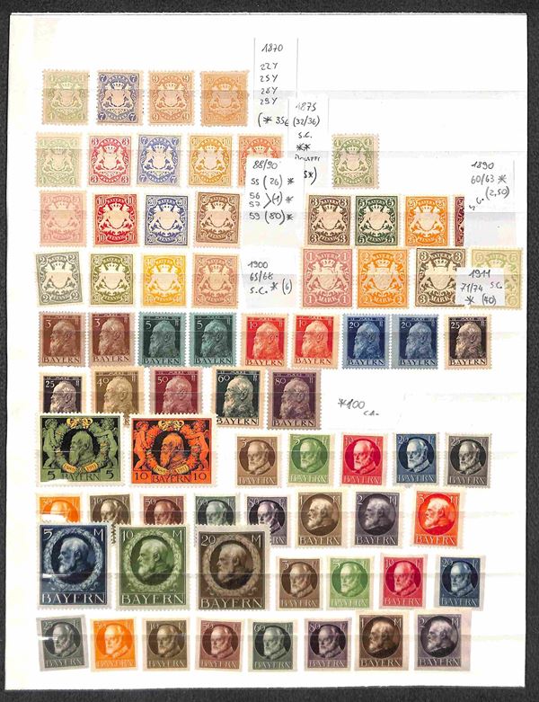 1870/1920 - BAYERN - Collezione di valori e serie complete del periodo in 2 pagine di raccoglitore (presenti alcuni valori Wuttemberg e ocuupazione) - gomma integra e originale