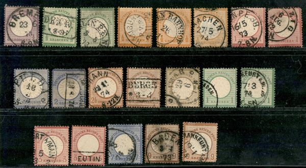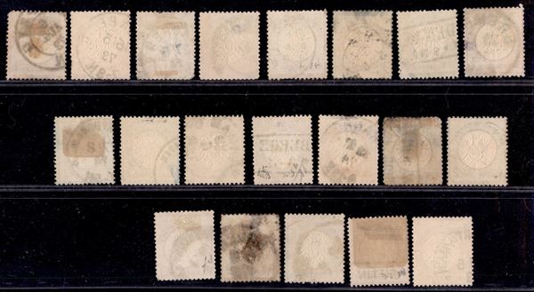 1872 - Aquila scudo grande (16/22+23+25/28) - insieme di valori della serie con alcune ripetizioni - usati da esaminare