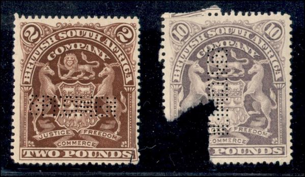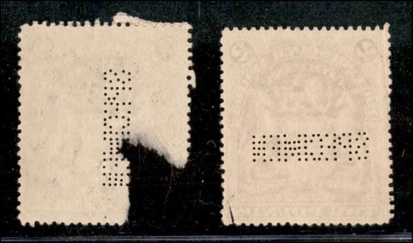 1898 - Perforati Specimen - 2 sterline (72) + 10 sterline (74) - senza gomma - difettosi
