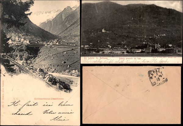 1899/1910 Due cartoline ed una lettera con bolli di navigazione del Lago di Como - tutti differenti