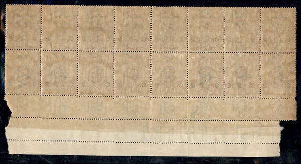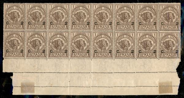 1907 - 2 cent su 1 besa (10) - blocco di 16 bordo foglio integrale in basso - gomma integra