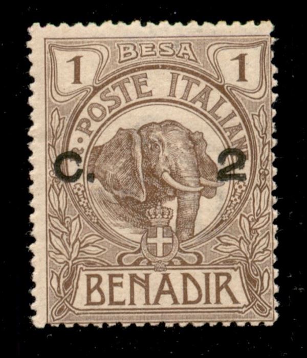 1907 - 2 cent su 1 besa (10e) con soprastampa al centro - gomma originale
