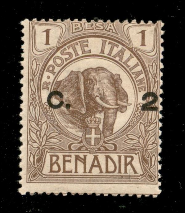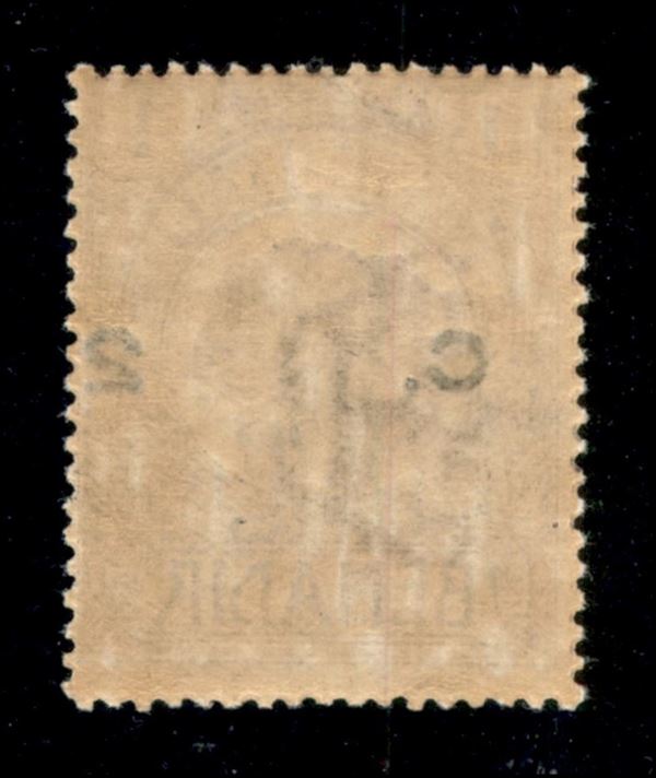 1907 - 2 cent su 1 besa (10e varietà) - soprastampa al centro spostata a destra - gomma integra