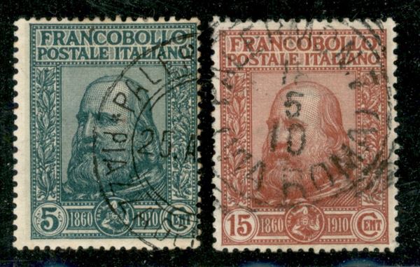 1910 - Garibaldi (87+88) - insieme dei primi due valori usati - Chiavarello + Raybaudi