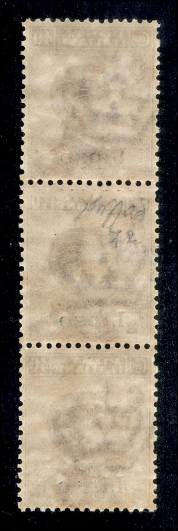 1912 - 40 cent Michetti (6 + 6a + 6) - striscia di 3 con varietà al centro - gomma integra - Caffaz
