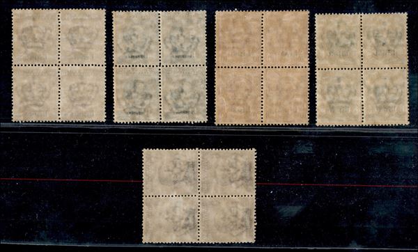 1912 - Soprastampti (2/3 + 5/7) - insieme di cinque valori in quartina - gomma integra