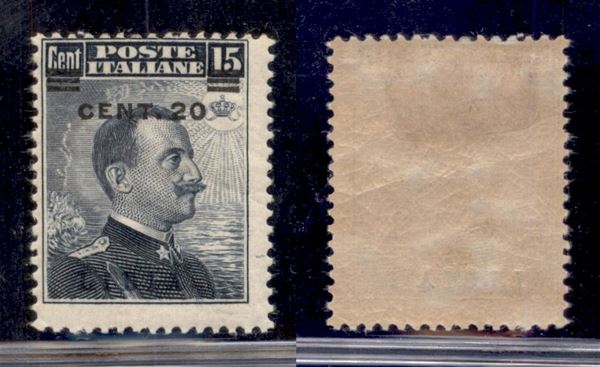 1916 - 20 cent su 15 (17/Ia) con soprastampa spostata - gomma originale (100)