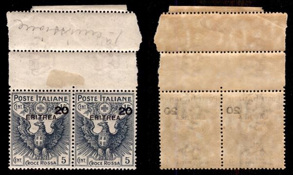 1916 - 20 cent su 15 Croce Rossa (43) - coppia bordo foglio - gomma integra