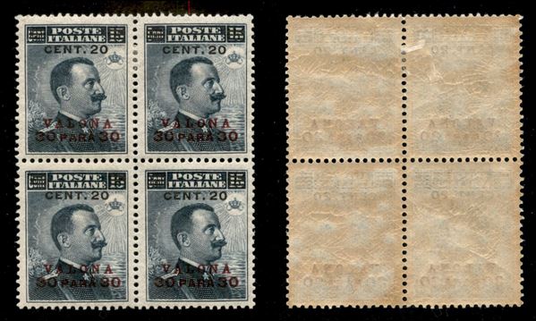 1916 - 30 para su 15 cent (9A - rosso lilla) in quartina - gomma originale (due gomma integra - ben centrata