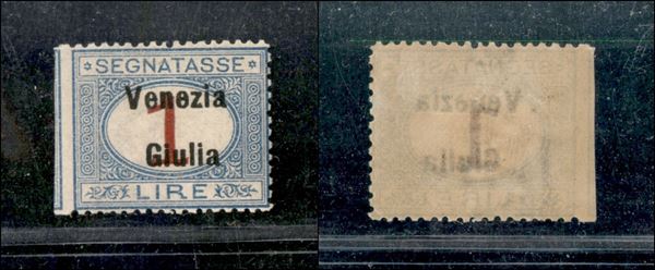 1918 - 1 lira Segnatasse soprastampato (7) salto di dentellatura a sinistra - non catalogato - nuovo con gomma