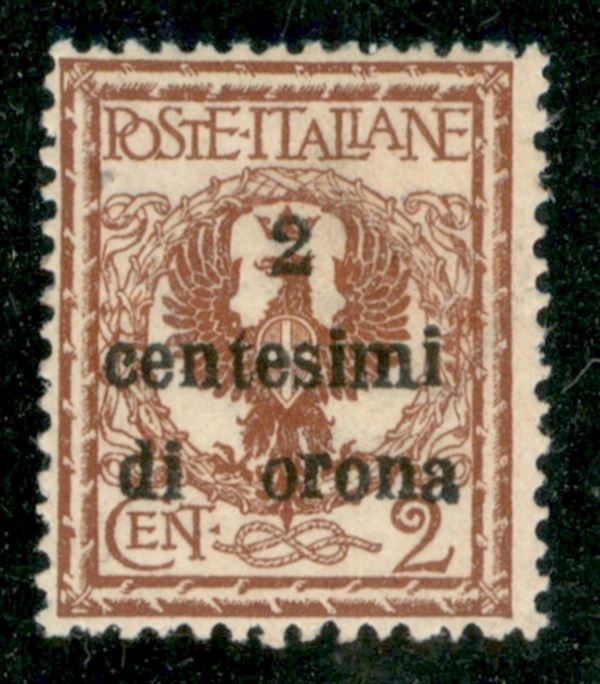 1919 - 2 cent su 2 cent Floreale (2 g) - lettera mancante "orona" - gomma originale