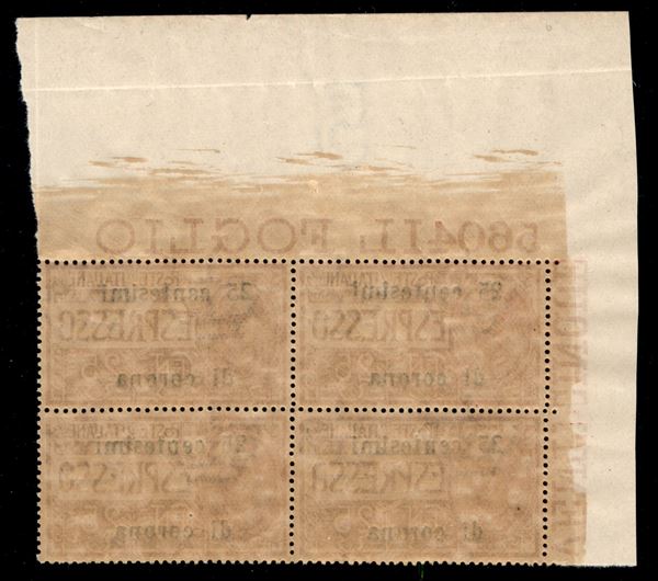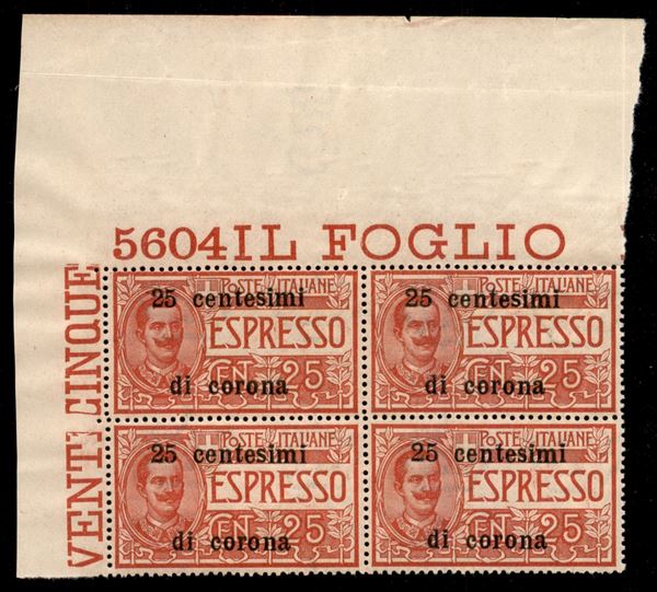 1919 - 25 cent Espressi (1) - quartina angolare con numero di Tavola 5604 - gomma integra
