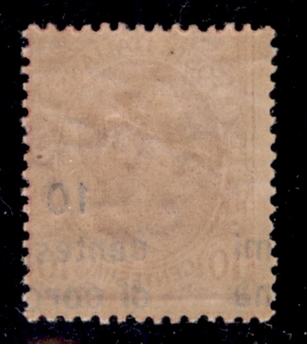 1921 - 10 cent su 10 cent Leoni (3 varietà db) - soprastampa spostata in basso e a destra - non catalogato - gomma originale