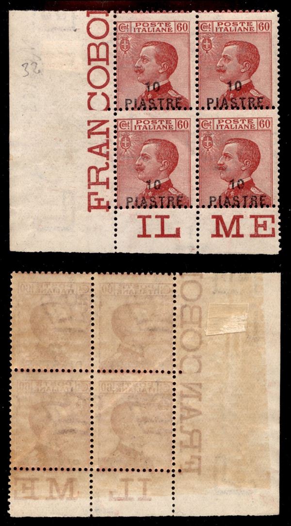 1921 - 10 piastre su 60 cent (32) - quartina angolare - gomma integra