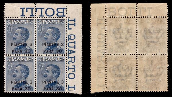 1921 - 3,30 piastre su 35 cent (38) - quartina angolare - gomma integra - ottimamente centrata