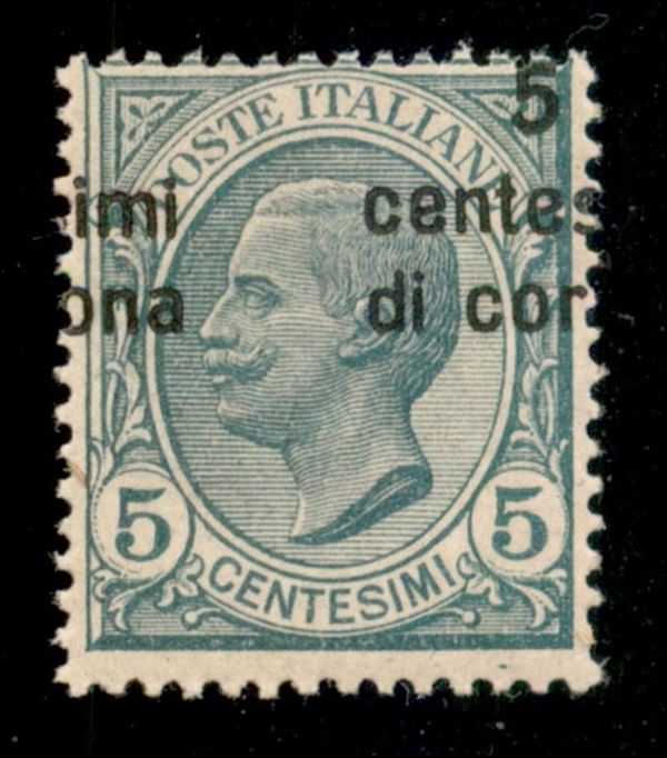 1921 - 5 cent su 5 (2ba) con soprastampa in alto a sinistra (a cavallo) - gomma originale