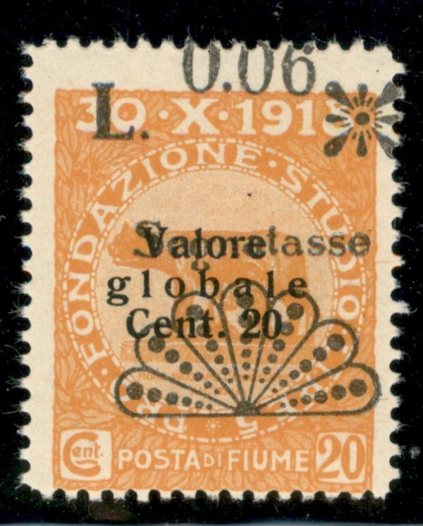 1921 - 6 cent su 20 cent Segnatasse (28q) - valore in alto - gomma integra