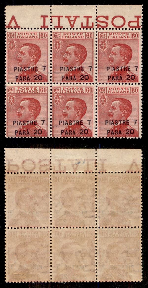 1921 - 7 piastre su 60 cent (39) - blocco di sei bordo foglio - gomma integra - ottimamente centrato