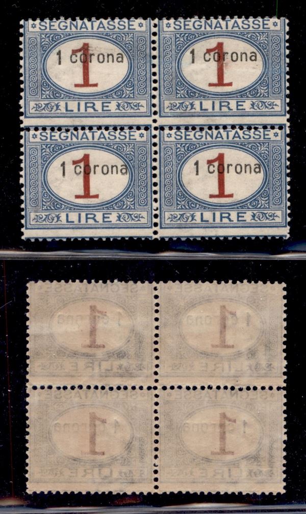 1922 - 1 corona su 1 lira (2) in quartina - gomma integra (200+)