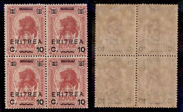 1922 - 10 cent su 1 anna (58) in quartina - gomma integra