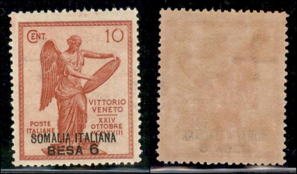 1922 - 6 besa su 10 cent Vittoria (31h) - filigrana croce - gomma integra (90)
