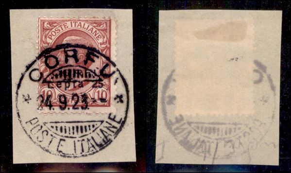 1923 - 25 lepta su 10 cent (9) usato su frammento il 24.9.23