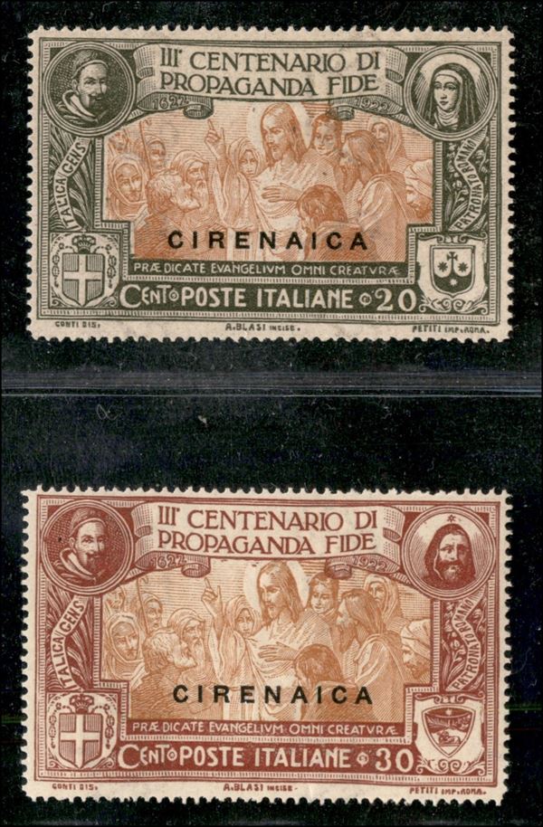 1923 - Propaganda Fide - Ritocchi - 20 cent (1a) gomma integra + 30 cent (2a) traccia di linguella