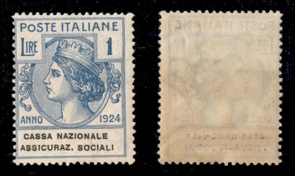 1924 - 1 lira Assicuraz. Sociali (29) - gomma integra (275)