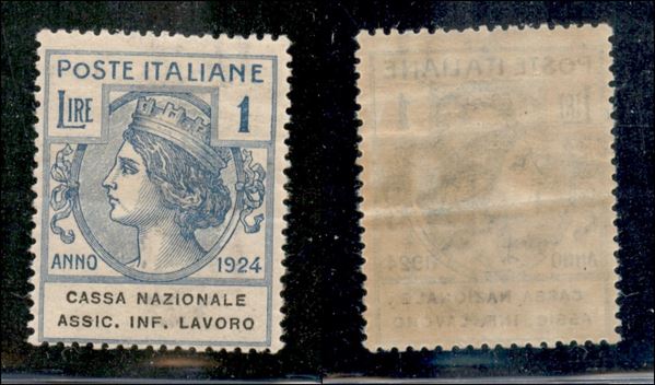 1924 - 1 lira Cassa Inf. Lavoro (22) - gomma integra - leggera piega naturale di gomma
