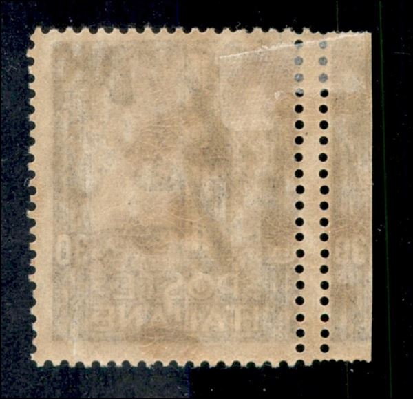 1924 - Marcia su Roma 30 cent con doppia dentellatura verticale da un lato (142f) nuova con traccia di linguella