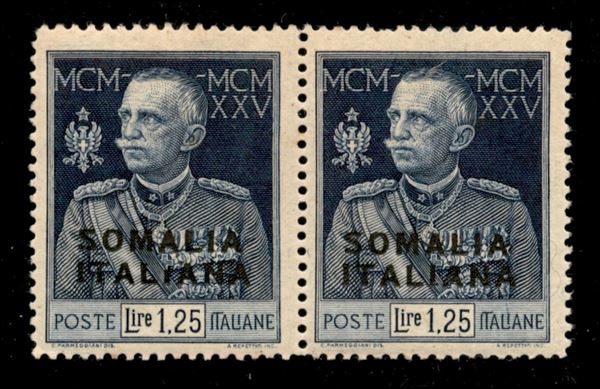 1926 - 1,25 lire Giubileo (72 varietà + 72) - seconda I di Italia rotta (manca metà superiore) in coppia col normale - gomma integra (con ingiallimenti) - non catalogato - A. Diena