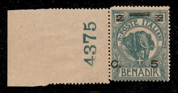 1926 - 5 cent su 2 besa (74) bordo foglio integrale con numero di Tavola (4375) - gomma integra
