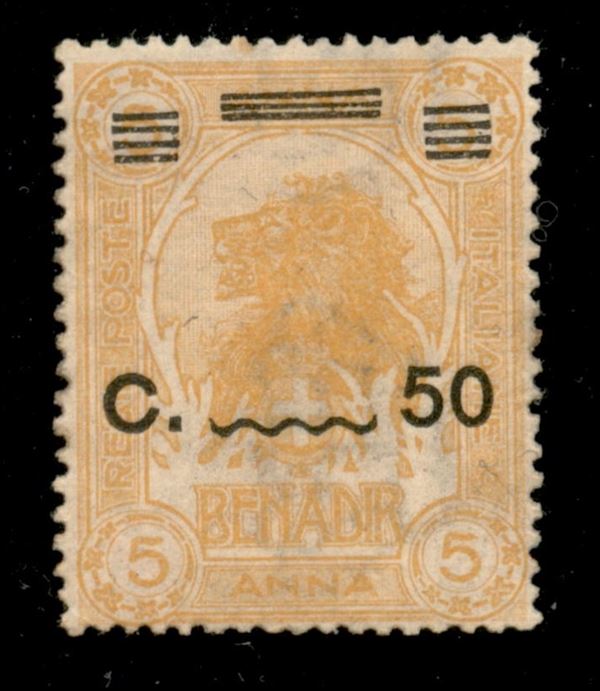1926 - 50 cent su 5 anna (79aa) con soprastampa del valore spostata al centro - gomma originale