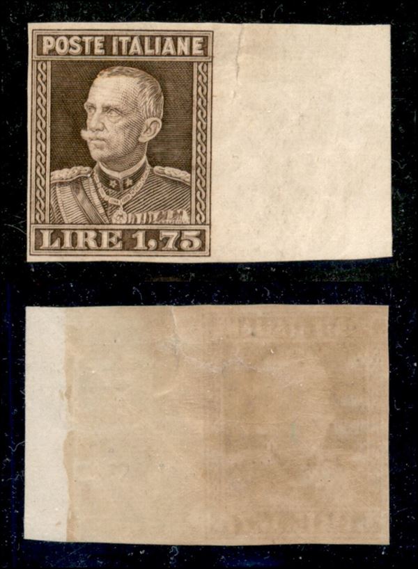 1927 - 1,75 lire (214ga) bordo di foglio non dentellato a destra - dentellatura ritagliata su 3 lati - gomma originale