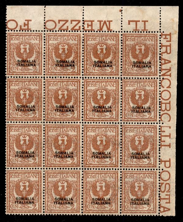 1927 - 2 cent Floreale (92) - blocco angolare di 16 - gomma integra