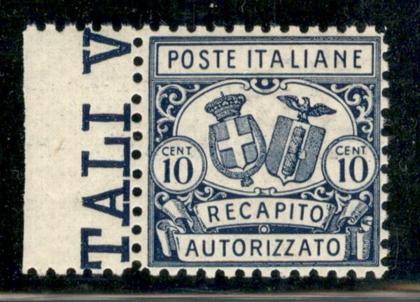 1928 - 10 cent Recapito Autorizzato (1) - bordo di foglio - gomma integra
