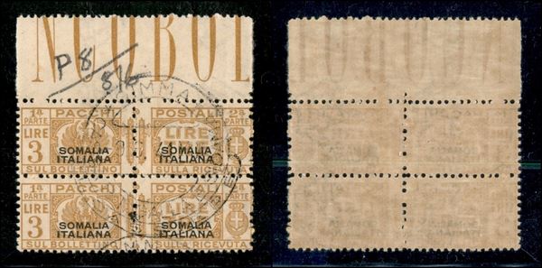 1928 - 3 lire (62) - coppia bordo foglio usata a Gimma il 9.6.41