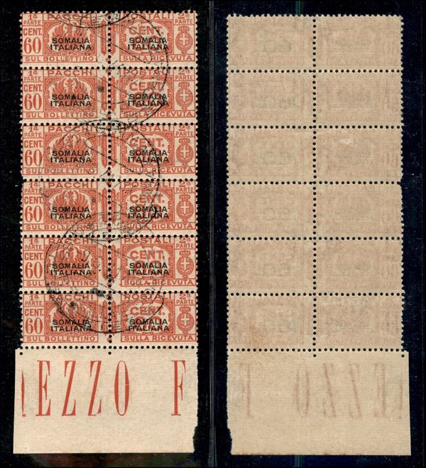 1928 - 60 cent (59) - striscia verticale di 6 bordo foglio usata a Gimma il 9.6.41