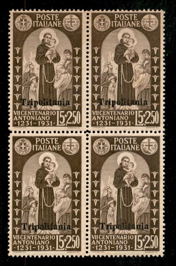 1931 - 5 lire S. Antonio (93) - in quartina - gomma integra