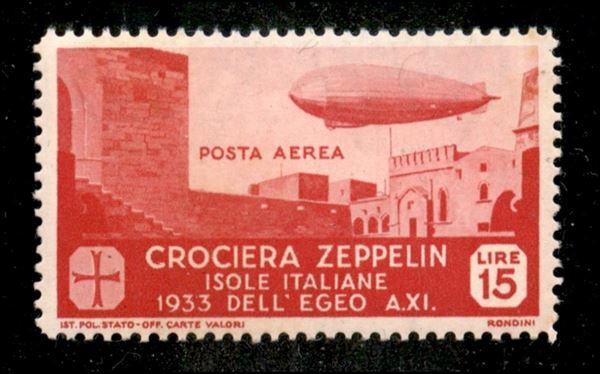 1933 - 15 lire Zeppelin (26) - gomma integra - ingiallimenti