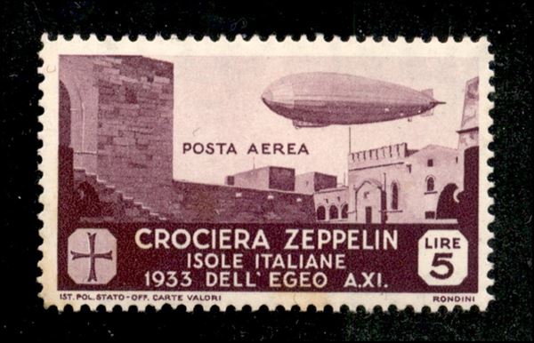 1933 - 5 lire Zeppelin (23) - gomma integra - ingiallimenti